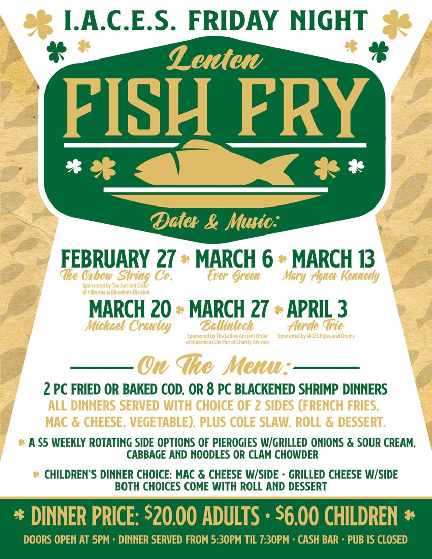 Join us for our annual Friday Night Lenten Fish Fries at the Irish American Club East Side, a favorite Lenten tradition filled with great food and live music.