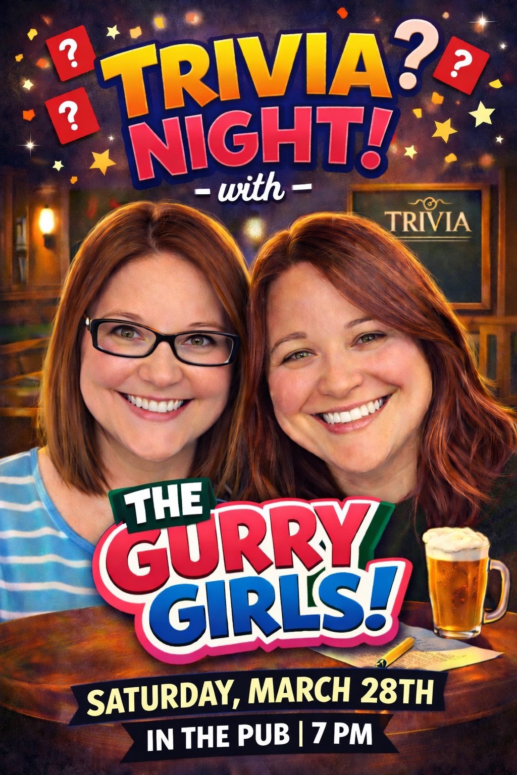 Get ready for a night of laughs, friendly competition, and just the right amount of chaos with Trivia with the Gurry Girls! 🎤✨